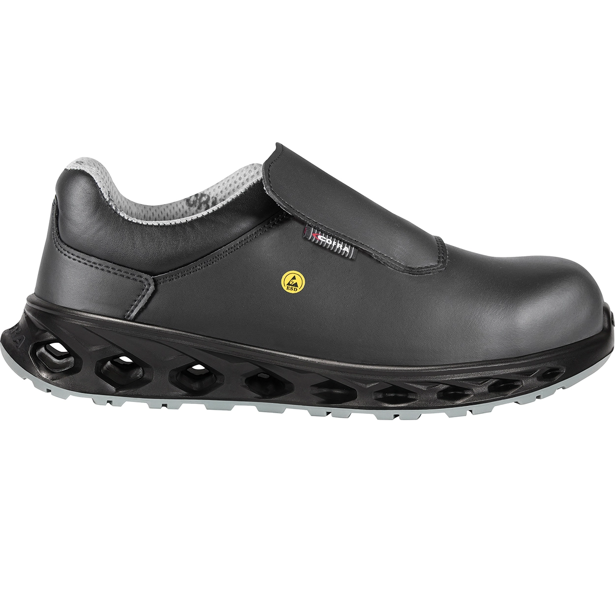 Ανατομικά μαύρα παπούτσια ασφαλείας Cofra Sanitation ESD S3S FO SR. Με προστασία δαχτύλων και υδατοαπωθητικό κορμό που εξασφαλίζουν ότι τα πόδια σας παραμένουν στεγνά και ασφαλή καθ ‘όλη τη διάρκεια της εργασίας. Αντιολισθητικά κατηγορίας SR, χάρη στην εξωτερική σόλα από διπλή πολυουρεθάνη που προσφέρει μεγάλη πρόσφυση σε ολισθηρές επιφάνειες. Άνετα και πρακτικά, με υψηλή διαπνοή, είναι κατάλληλα για πολύωρη χρήση σε βιομηχανίες τροφίμων, ξενοδοχεία, υπηρεσίες catering κλπ. Πλένονται στο χέρι στους 40οC με ουδέτερο σαπούνι.