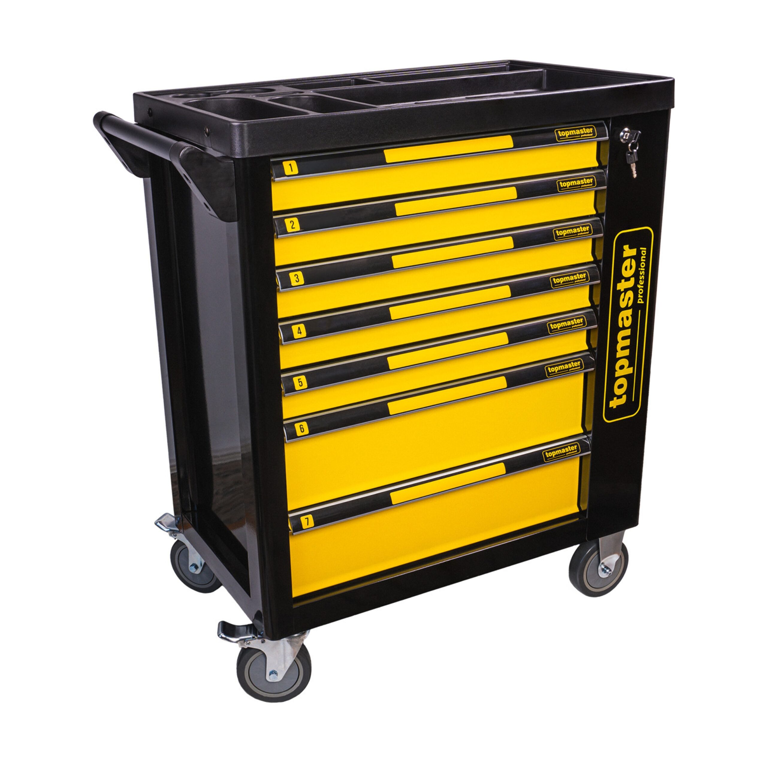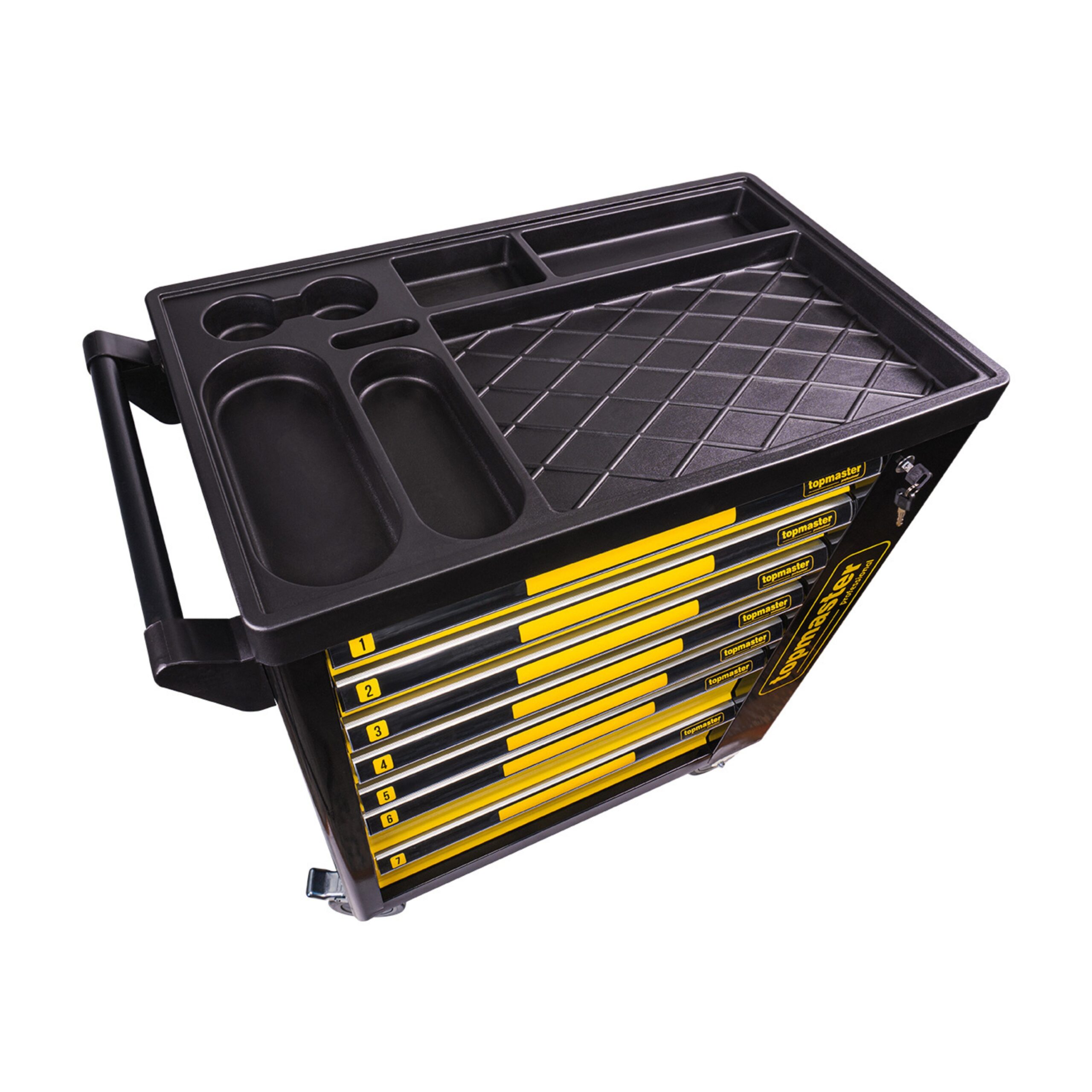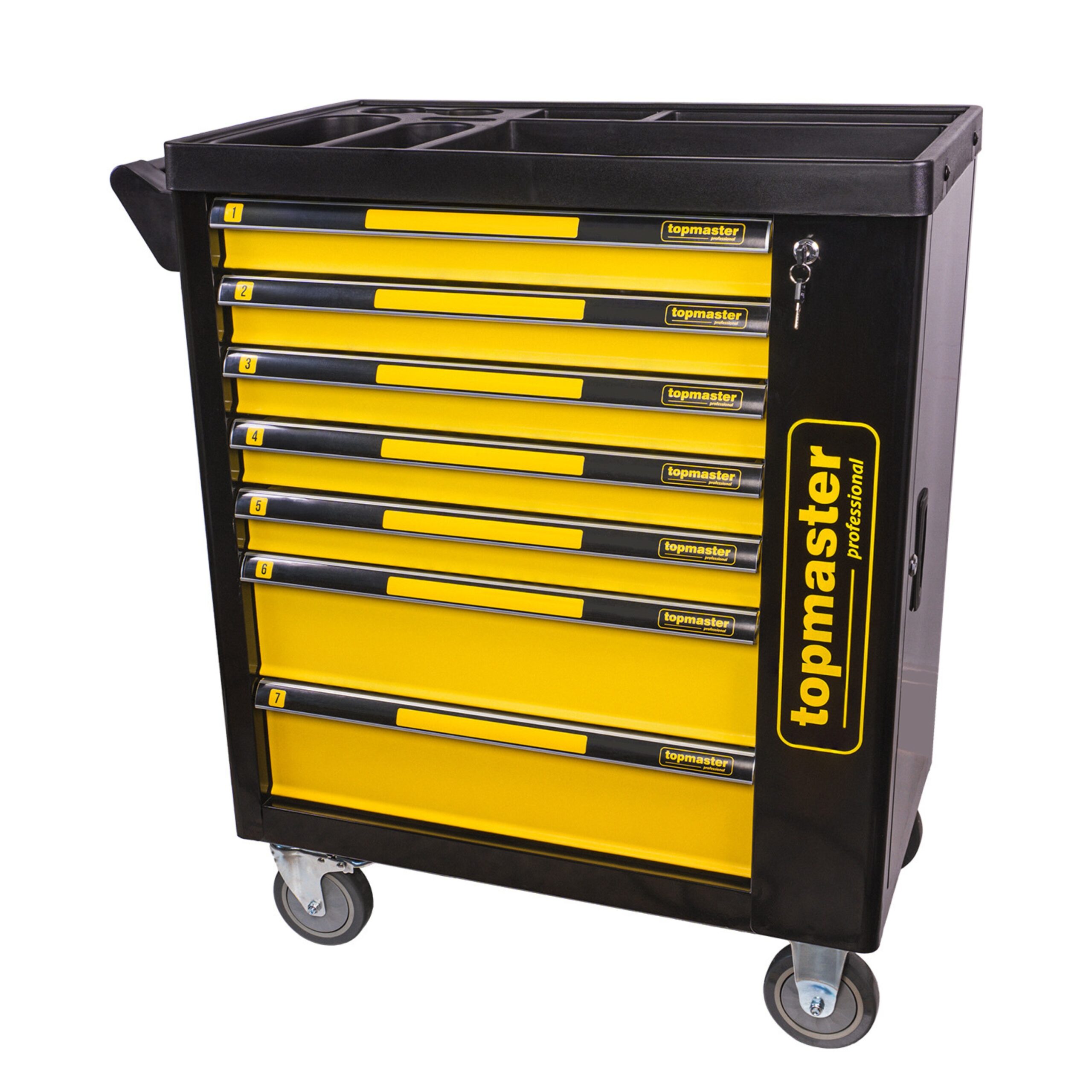 Ο τροχήλατος μεταλλικός εργαλειοφόρος TOP MASTER με 7 συρτάρια και διαστάσεις Π80xΒ48xΥ87εκ. αποτελεί μια ολοκληρωμένη λύση αποθήκευσης για κάθε επαγγελματικό ή οικιακό εργαστήριο. Η στιβαρή του κατασκευή από μεταλλικό υλικό εγγυάται αντοχή και μακροχρόνια χρήση, ενώ το σύγχρονο μαύρο-κίτρινο φινίρισμα προσδίδει επαγγελματική αισθητική στον χώρο εργασίας. Ιδανικός για την τακτοποίηση εργαλείων και εξαρτημάτων, προσφέρει εργονομία και ευκολία μετακίνησης χάρη στον τροχήλατο σχεδιασμό του.